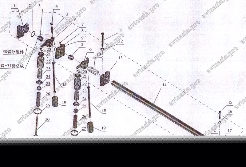 Ось коромысел и клапана